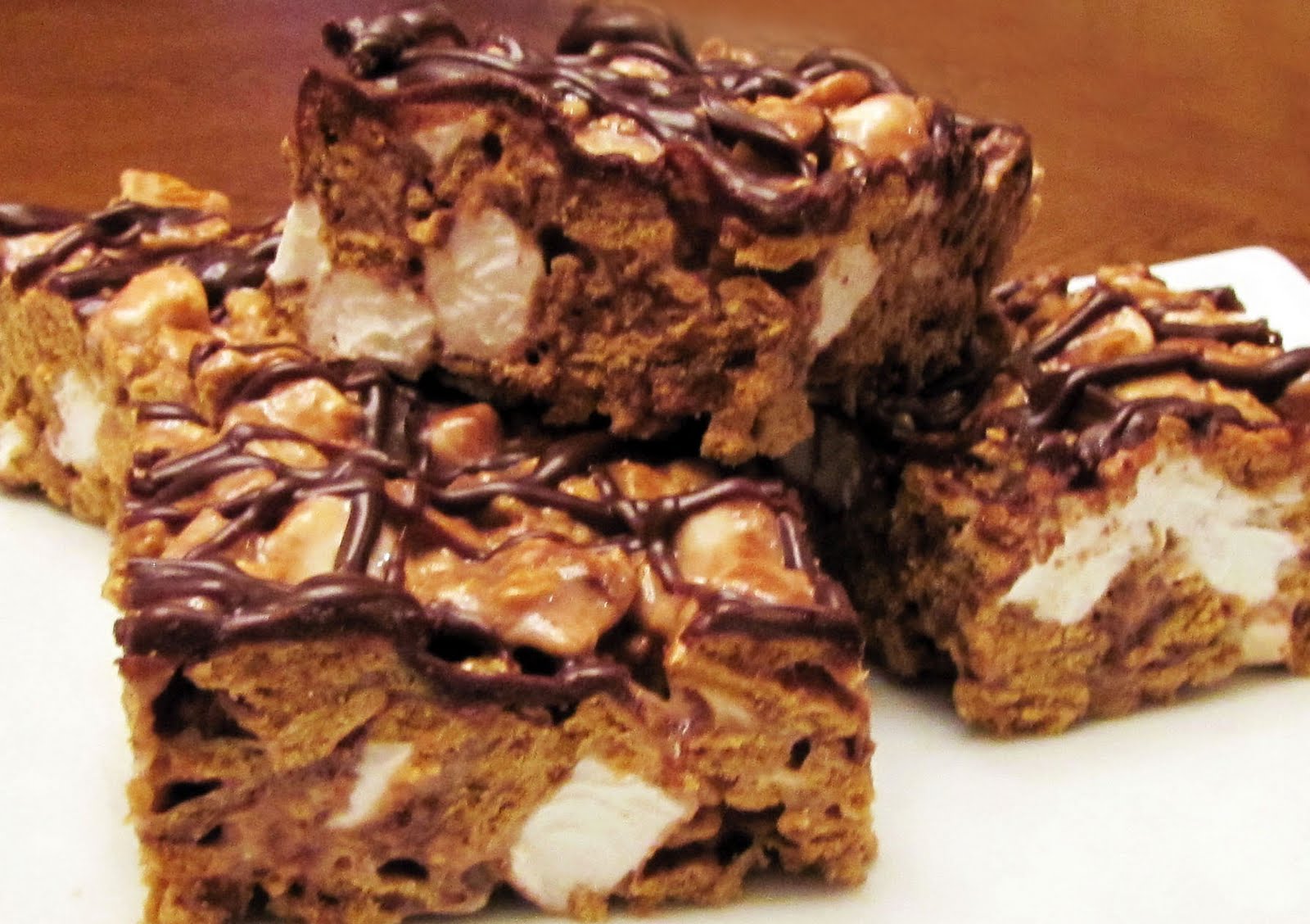 So, I’ve been trying to find a recipe for a cookie bar that will taste like a s’more for what seems like FOREVER. I’ve even tried to make brownies that taste like s’mores, but never quite perfected it. Well, I was sitting in a hotel room in Moses Lake watching Iron Chef this weekend when it hit me. Golden Grahams. If I made a Golden Graham rice krispie treat and added chocolate it would taste like a s’more. Guess what? IT DID! I could eat all of these (but I won’t, I’ll send them to work with Shane instead)
