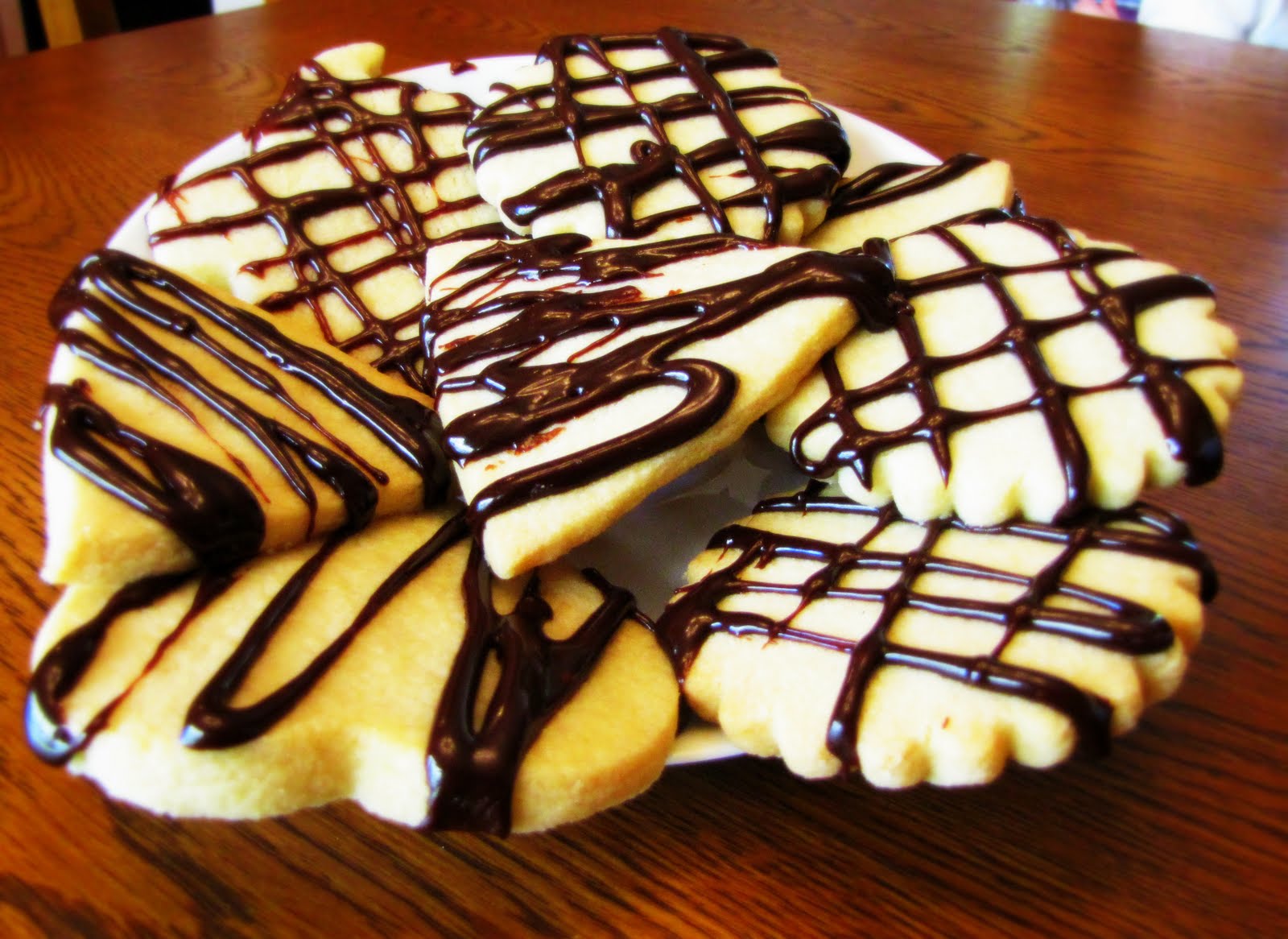 In a microwave safe dish, microwave some chocolate chips and about a tablespoon of milk or cream until melted. Drizzle over cooled cookies with a fork.