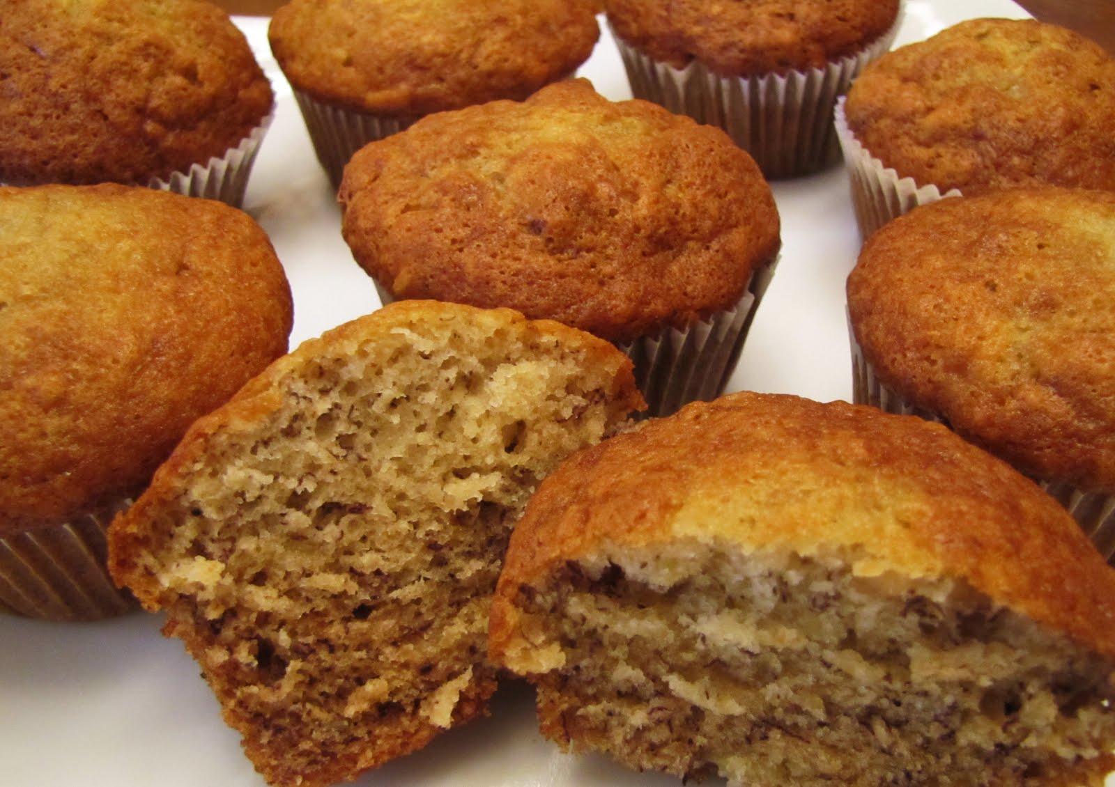 Today I had two very ripe bananas that I wanted to use, and I found this recipe which uses exactly two bananas. π It makes 8 delicious muffins.