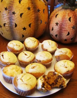 Had some leftover pumpkin in the fridge that I needed to use, so I made these muffins. I made 12 muffins without chocolate chips, and 12 muffins with chocolate chips. I think I liked them better without, but I’m not a big chocolate fan.