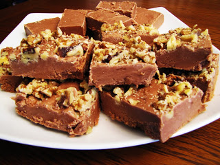 This is the simplest of holiday recipes. Fantasy Fudge. Super easy, super decadent. I only add walnuts to half (for my hubby, I am anti-nut)