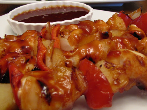 Barbeque for about 8 minutes, turning often. If you don’t have a barbeque, this can be done in your broiler. Serve the skewers with the remaining BBQ sauce. Enjoy!