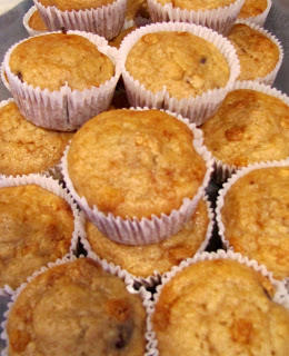 Measure flour, sugar, baking powder, cinnamon salt, and chocolate chips into a large bowl. Mix thoroughly, and make a well in the center.