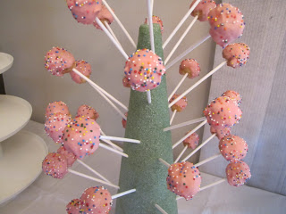 I wanted to make cake pops for my friend Emily’s bridal shower, but I was limited on time. I have to admit, I felt a little shame when I realized this was something Sandra Lee would do (she bothers me) but it worked! I came up with this super easy way to make them, and they were adorable and delicious.