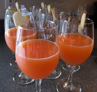 You might be thinking: Why would I need a recipe for mimosas? It’s just champagne and orange juice. Well, instead of posting an obvious recipe, I just want to share the cutest idea ever: decorating the glasses with fruit shapes. For my friend’s bridal shower, I made regular mimosas, but added a spash of grenadine, and the best part: thinly sliced pears which I cut into hearts with a small cookie cutter, put a small slit on the side, and added some flair to the side of the glass!