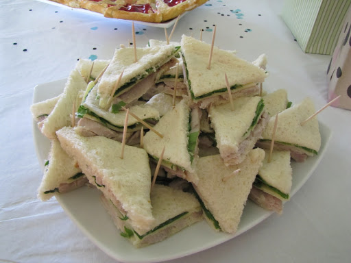 This sandwich requires a little more effort than most tea sandwiches, but it is WORTH the work! Tender pork roast is combined with a horseradish garlic mayo, and the arugula adds just a little bite. Any kind of white cheese that you like will do, I always use white cheddar. These are always a hit at tea parties and showers.