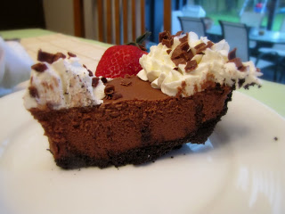 I needed a dessert for the dinner I was hosting to celebrate my sister in law’s birthday and Mother’s Day tonight. My sister in law loves chocolate, and I remembered a Marie Callender’s Chocolate Silk Pie that my husband is always raving about when we see it in the grocery store, so I set out to replicate it and the result was a creamy, delicious, and decadent chocolate mousse pie with a crisp cookie crust and sweet whipped cream and chocolate shavings on the top. It was delicious.