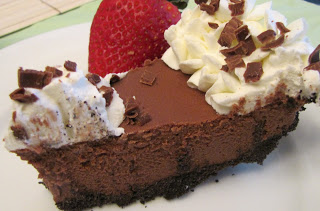 Before serving, beat the remaining 3/4 cup of cream until it forms high peaks. Spoon over the pie however you wish. You could spread it over the pie, or pipe it around the edges. Whatever looks prettiest to you. This is a great gluten free dessert, if you use gluten free chocolate cookies for the crust.