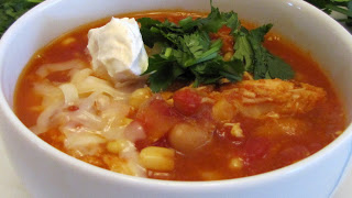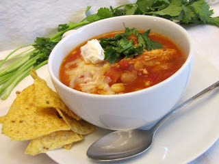 Our friend Gretchen had us over for dinner a few months ago and she served this delicious soup. The best part? In 1 1/4 cups there are only 203 calories! Of course, if you add sour cream and cheese, it will be a little more, but with or without the extras, this soup is amazing! I used all white beans, and added a cup of chicken broth to mine. This meal took about 10 minutes TOTAL to prepare.