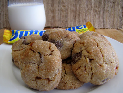 Who wouldn’t want to eat a peanut butter cookie filled with chocolate chips and Butterfinger candies?