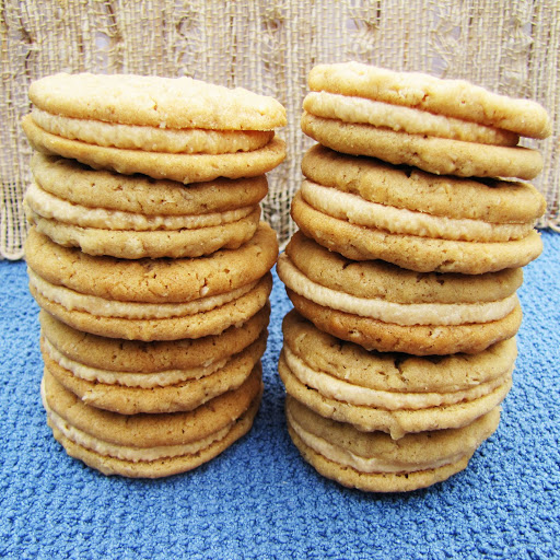To Make Filling: Cream the filling ingredients until well blended. Spread or pipe filling on to half of the cooled cookies, then top with the other half to form sandwiches. Don’t be stingy with the filling–there is quite enough for all the cookies.