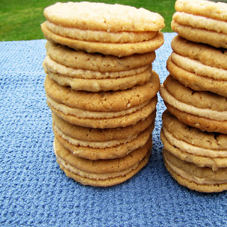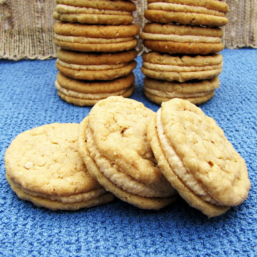 This recipe is a knock off of Girl Scount Do-Si-Dos. Simply put– peanut butter sandwich cookies. 🙂 A sweet peanut butter filling is sandwiched between two delicious peanut butter oatmeal cookies. These were quick and easy to make and I had all of the ingrdients available in my pantry. Make this for all of the peanut butter lovers in your life.