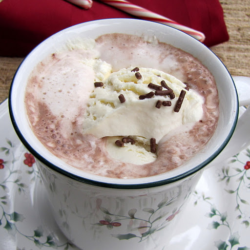 I stumbled across the amazing combination of hot chocolate topped with frozen whipped cream purely by accident. The one downfall to homemade whipped cream is that once you whip it, it really doesn’t last in the fridge for more than a couple days before it starts to get all runny. I made a big batch for hot chocolate a few nights ago, and as I was sticking it into the fridge, I thought “Maybe I should see how this is in the freezer.”