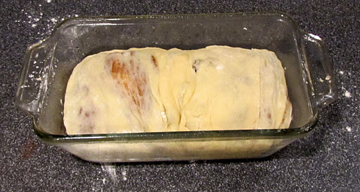 Place loaf into well greased 9 x 5 inch pan. Lightly grease top of loaf.