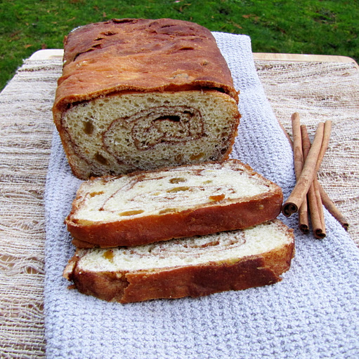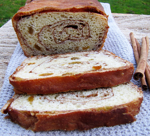 I love all things cinnamon.  If you’re a regular reader of my blog, you’ve probably figured that out by now. 🙂  Last night, I de-Christmased my house, and to cheer myself up after the most terrible day of the year, I decided to bake a loaf of cinnamon raisin bread while I was working.