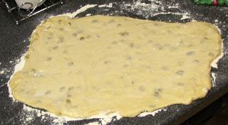 Roll out on a lightly floured surface into a large rectangle 1/2 inch thick.