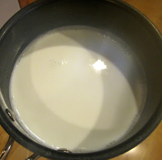 Scald the milk.  Basically, this means warm the milk in a small saucepan until it bubbles on the edges, then remove from heat. Let cool until lukewarm.