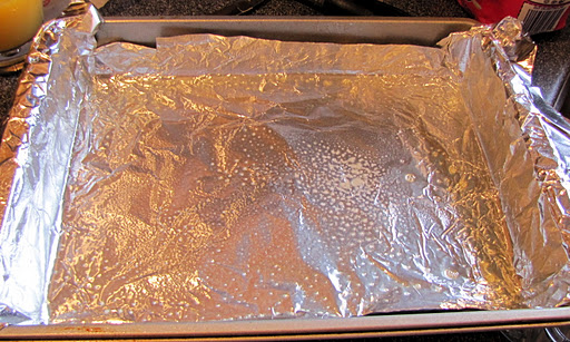 Preheat the oven to 375 F. Line a 9×13 inch pan with foil and butter/spray the foil.