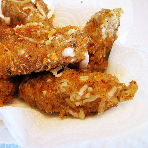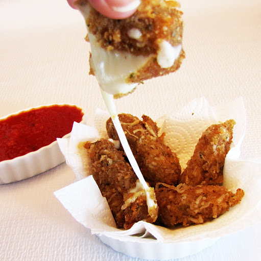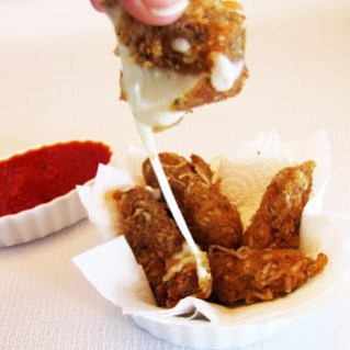 This was my first attempt at them (I got a deep fryer for Christmas and have been going crazy with it, experimenting with homemade doughnuts and apple fritters and fried ice cream) and they turned out pretty well. I have some perfecting to do with the frying part. At first I turned the oil up way too high; it should be at about 325 degrees so they can cook low and slow so that the cheese will melt.