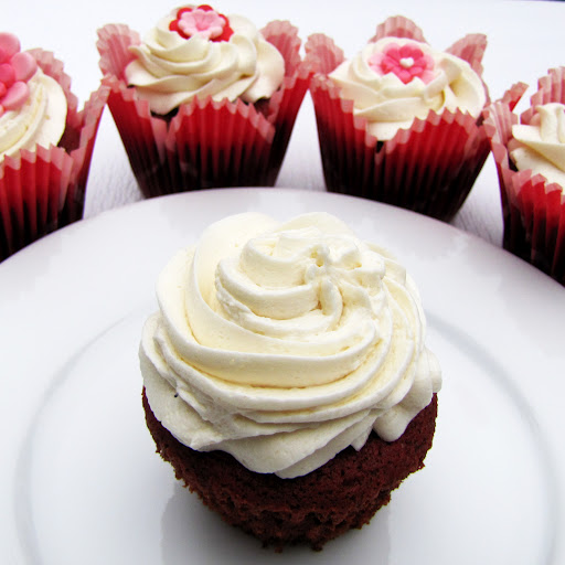 One of the things that makes these rich, decadent cupcakes wonderful is the frosting. Instead of a traditional cream cheese frosting, I top them with Ermine Icing- a light, fluffy vanilla frosting that tastes EXACTLY like homemade whipped cream.