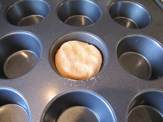 And press it into a muffin tin. Sprinkle with a little more cinnamon sugar.