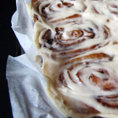 On a floured surface, roll dough into a 16×21 inch rectangle. Spread dough with 1/3 cup butter and sprinkle evenly with sugar/cinnamon mixture. Sprinkle blueberries evenly throughout. Roll up dough tightly and cut into 12 rolls. (Since there are blueberries in there, make sure you use a serated knife.) Place rolls in a lightly greased 9×13 inch baking pan. Cover and let rise until nearly doubled, about 30 minutes. Meanwhile, preheat oven to 400 degrees F.