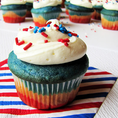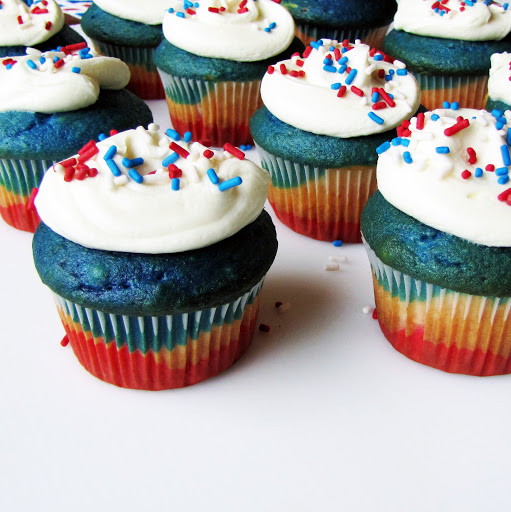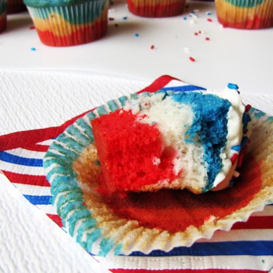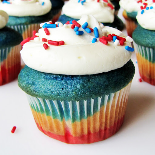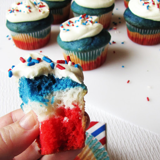 These are similar to rainbow cupcakes! They are so fun and everyone always thinks they are so impossible, but so easy. Love the red, white, and blue idea. So cute!Here are some rainbow cupcakes I've made! http://sweetsnyummmmytreats.blogspot.com/2012/01/all-time-favorites.html