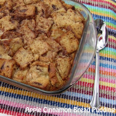 Bread pudding just by itself is delicious with all the creamy, cinnamon-y goodness.  The apples and raisins in the bread really just make it even more delicious.