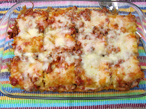 Place seam side down in pan. Continue until you’ve used all the noodles.