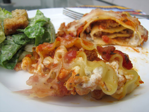 I used ground turkey to lighten up the recipe a bit, and whole wheat lasagna noodles, but you could use any kind of ground meat and any kind of lasagna noodle (except those no-bake ones)