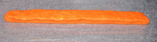 Shape each portion of dough into two 8-in. logs. On a piece of wax paper, flatten top and push sides in at a slight angle. Place orange logs on yellow logs; push the sides in at a slight angle. Top with white logs; form a rounded top.