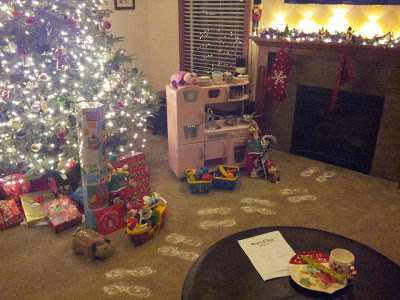 Santa and the Easter Bunny are elaborate affairs, with baskets of goodies, foot prints across the living room floor, and confetti. Letters are written to (and answered) by Santa, and the names of his reindeer were memorized at age two.