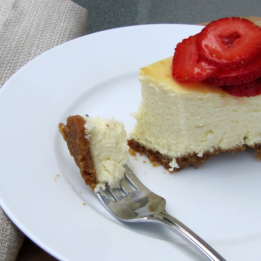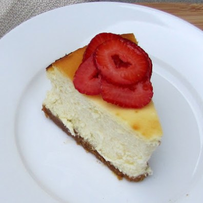 So, finally, I have found a worthy cheesecake recipe for you.  I am having a dinner party tonight, so I made this last night to serve this evening with decaf coffee after dinner, and it is divine.  Perfectly creamy, perfectly sweet and dense, perfectly rich. Eat it alone, or serve it with fresh, sweetened strawberries, raspberry puree, or caramel or chocolate sauce.