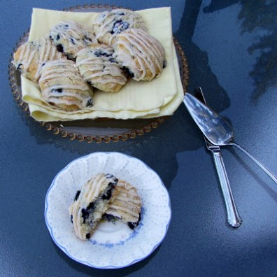 Turn dough out onto a floured surface and gently fold in blueberries. Pat out onto floured surface, and cut out rounds using a biscuit cutter or a drinking glass.  Brush with egg wash if desired.