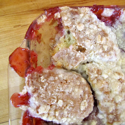 My mother in law just so happens to also love strawberry rhubarb things, so I decided to make this for her birthday when we were up at their summer cabin. My husband was right, it is very good. I only wish we had had some ice cream to go with it.