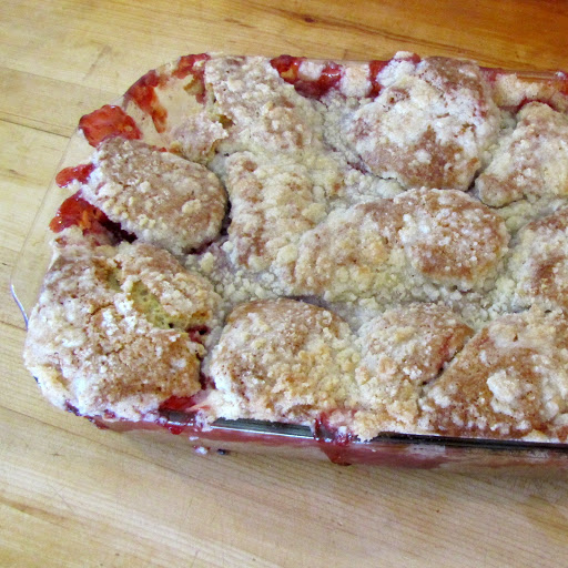 My mother in law just so happens to also love strawberry rhubarb things, so I decided to make this for her birthday when we were up at their summer cabin. My husband was right, it is very good. I only wish we had had some ice cream to go with it.