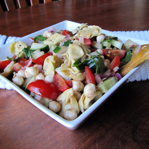 There is nothing not to like. Cold, cheese-filled tortellini, tossed with Mozarella Fresca, cherry tomatoes, red onion, cucumber, and basil. All tied together with a balsamic vinaigrette.
