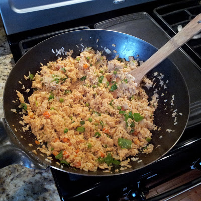 Fried rice is easiest to cook if you make the rice the day before and let it sit overnight in the fridge. At the very least, cool it completely in the fridge before you start cooking.
