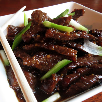 The recipe calls for Flank steak, but I just grabbed some stir-fry steak that was on sale at the grocery store and it was excellent. I also added about 3 more tablespoons of sugar to the sauce and a lot more green onions, and I thought it tasted perfect. Taste as you go!