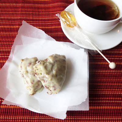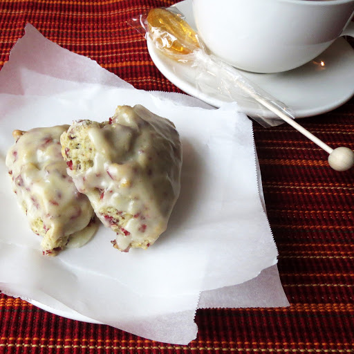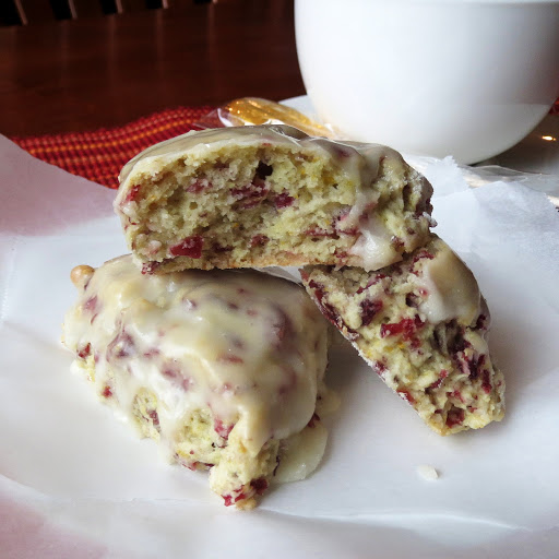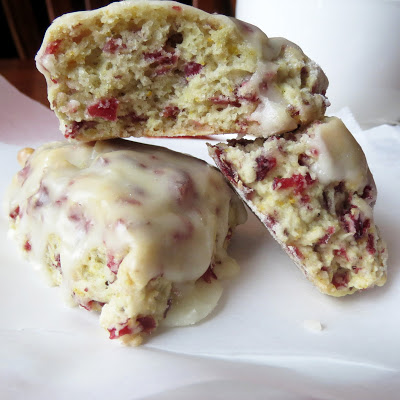 Combine glaze ingredients if; drizzle over scones. (I dipped the top of each scone in the glaze)