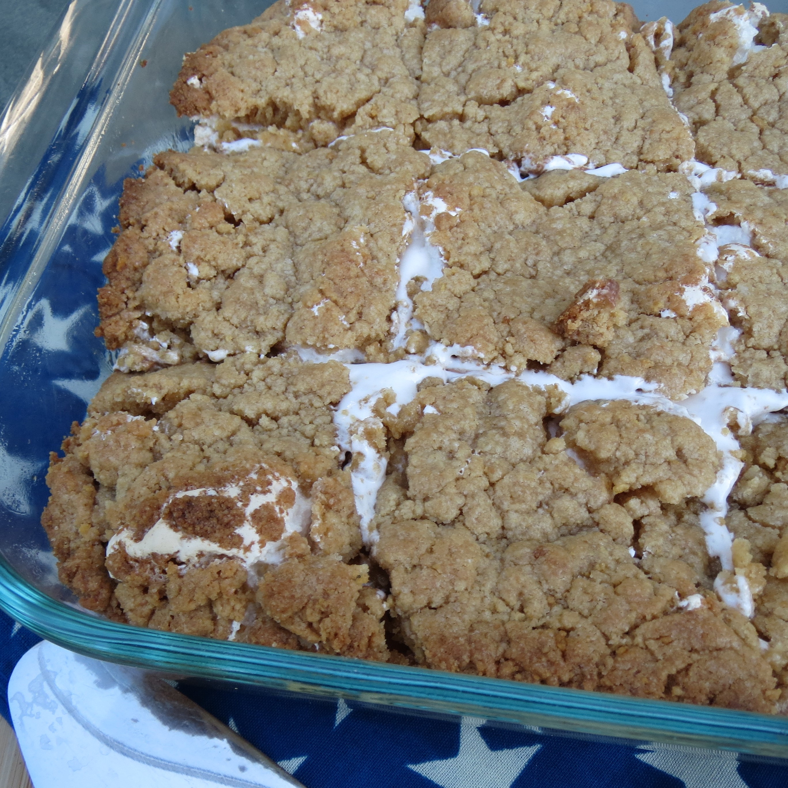 Bake for about 30 minutes or until golden. Don’t worry about the oozing marshmallow. These bars, like s’mores, are messy- but that is never a bad thing.