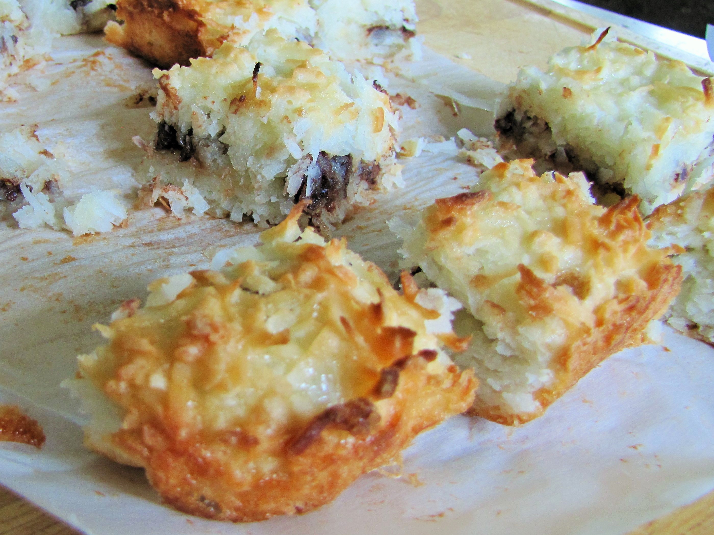 This recipe makes an 8×8 pan. If you’re taking these somewhere, you can easily double it for a 9×13 pan, but for that, you’ll need like 8 cups of coconut and a dozen eggs. Wouldn’t be a problem for me, but….. 😉