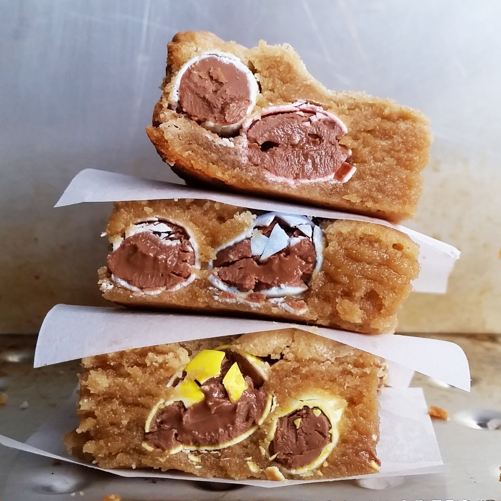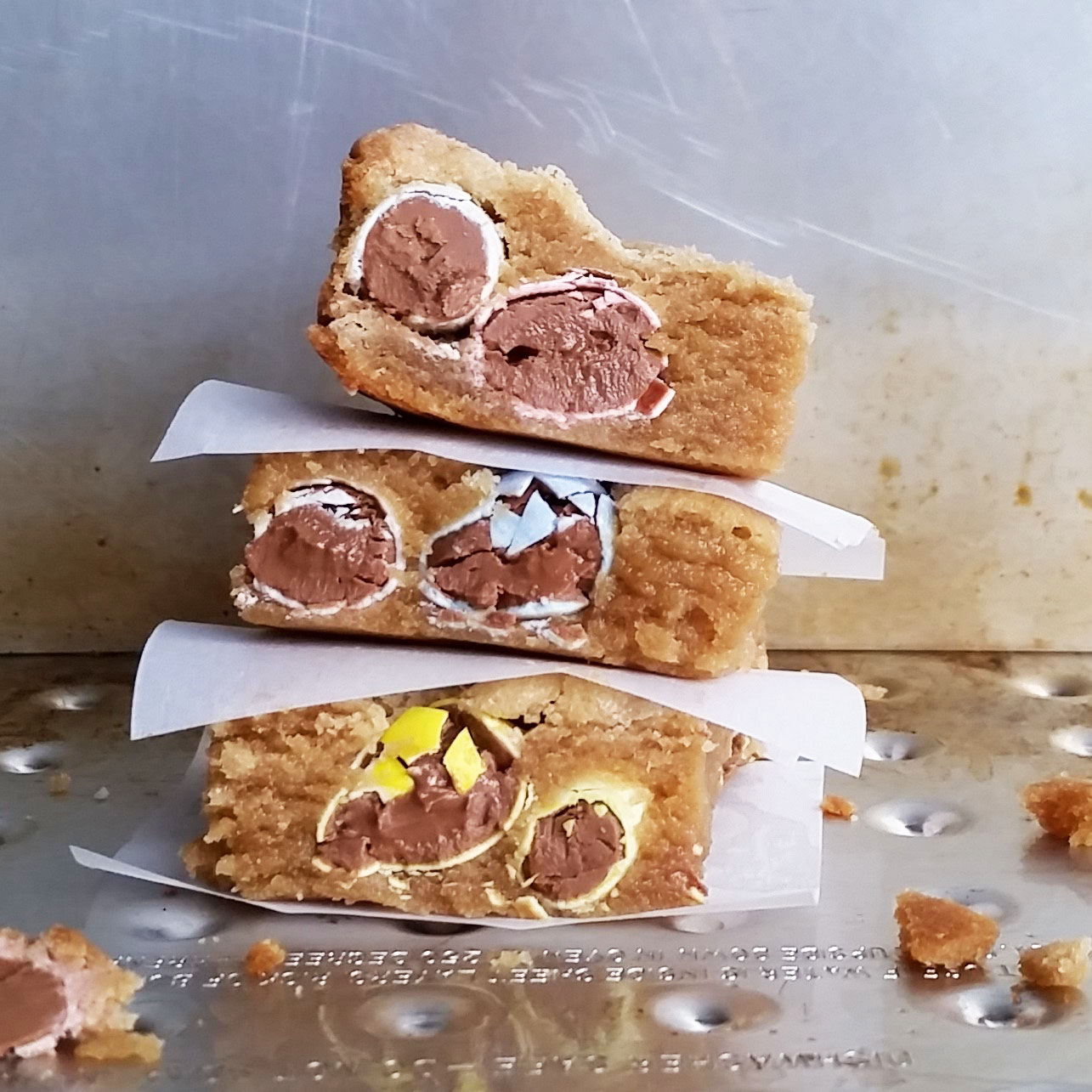You know those horrible (and by horrible, I mean wonderful) little Cadbury chocolate eggs that come out at Easter time? They have that crispy, hard shell, and they are filled with that wonderful, creamy chocolate? Yeah, I bought a bag of those last week. It was a moment of weakness, and I instantly regretted it. They sat in my pantry, calling to me “Open me, Shannon… open me…”