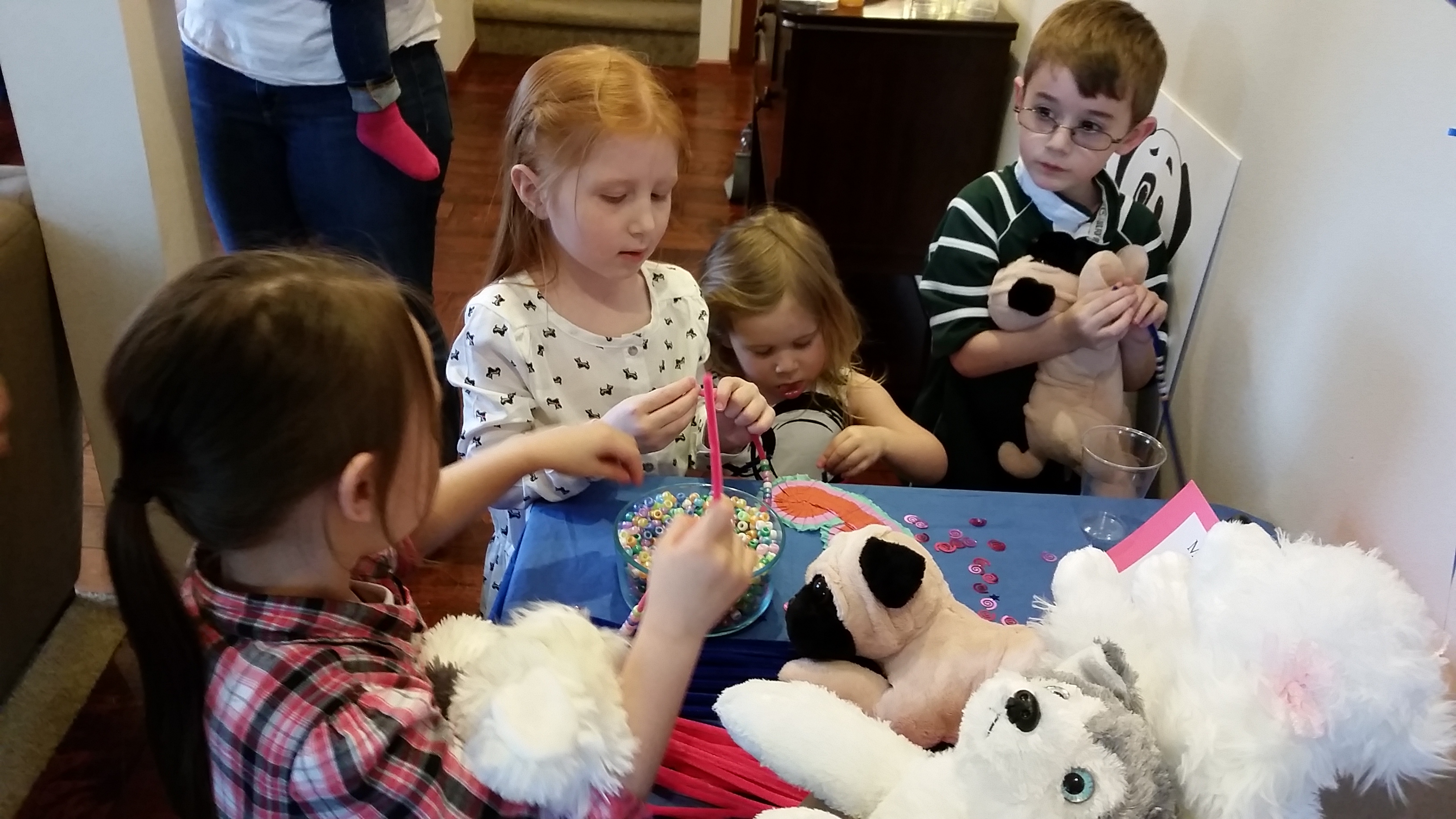 We also bought some pipe cleaners and beads so the kids could make their own collars for the puppies. Also a hit.