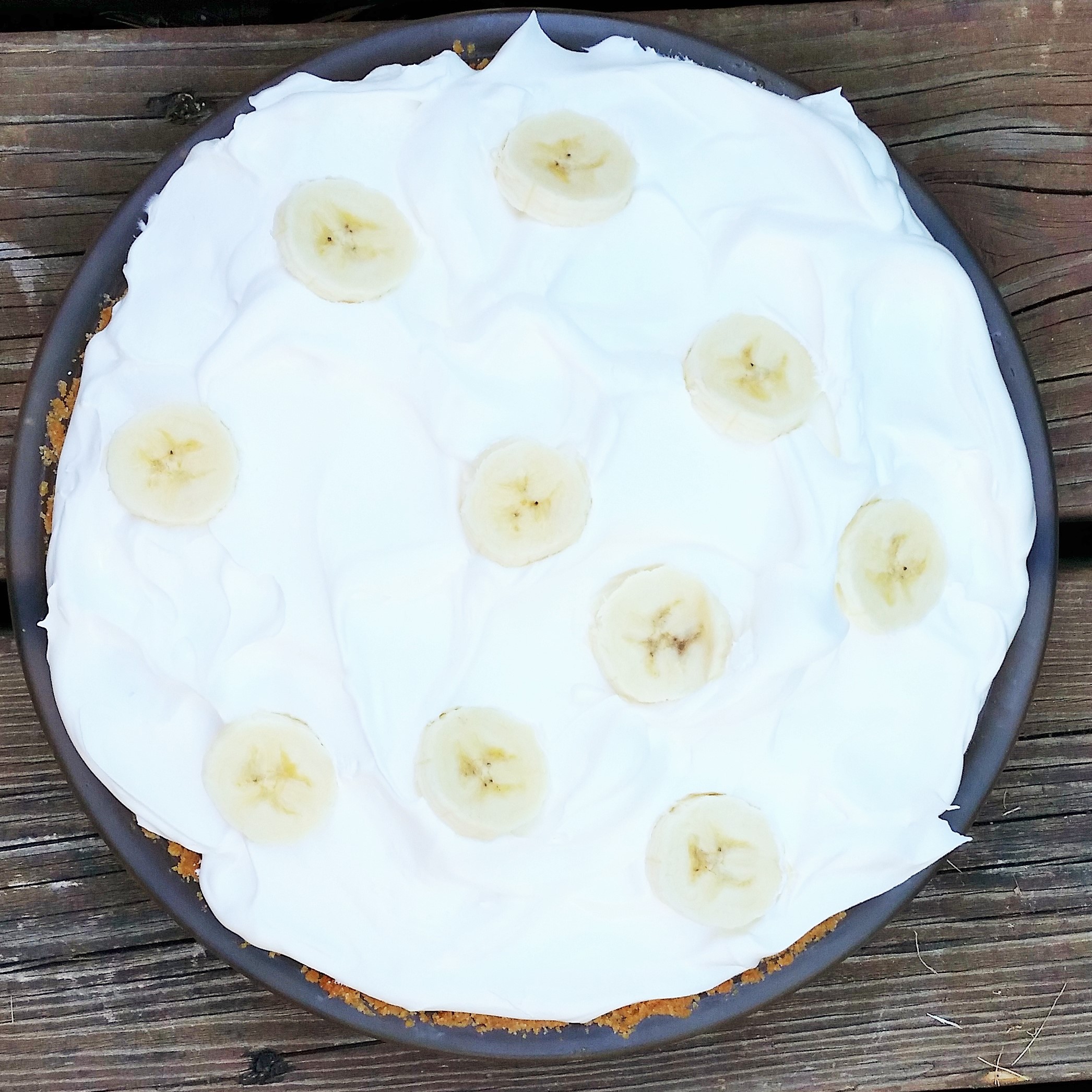 I was right to be excited. This was the perfect combo. I use my no-fail vanilla pudding recipe. It’s easy, even for beginning bakers, and the crust was the perfect compliment to the bananas and the pudding. I had to travel two hours with my pie, so I used cool-whip. Under any other circumstance I would have made homemade whipped cream. Would have been better. Even with cool whip though….