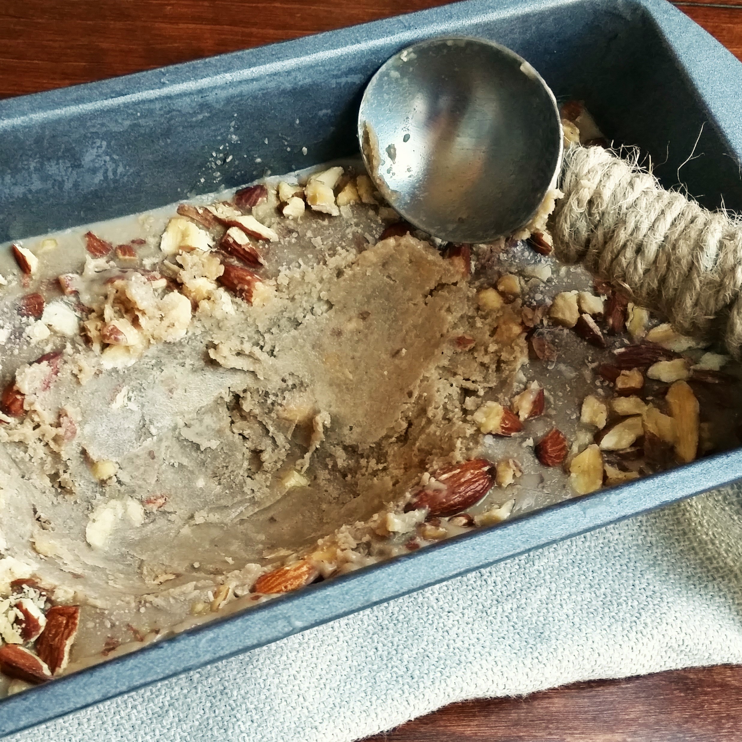 The next day, place the mixture into your ice cream maker as directed. When it’s about 15 minutes from being done, add most of the almonds (reserving some to sprinkle on the top.) When the ice cream maker is complete, pour mixture into a bread pan, sprinkle with the additional almonds, and freeze until set. Enjoy!