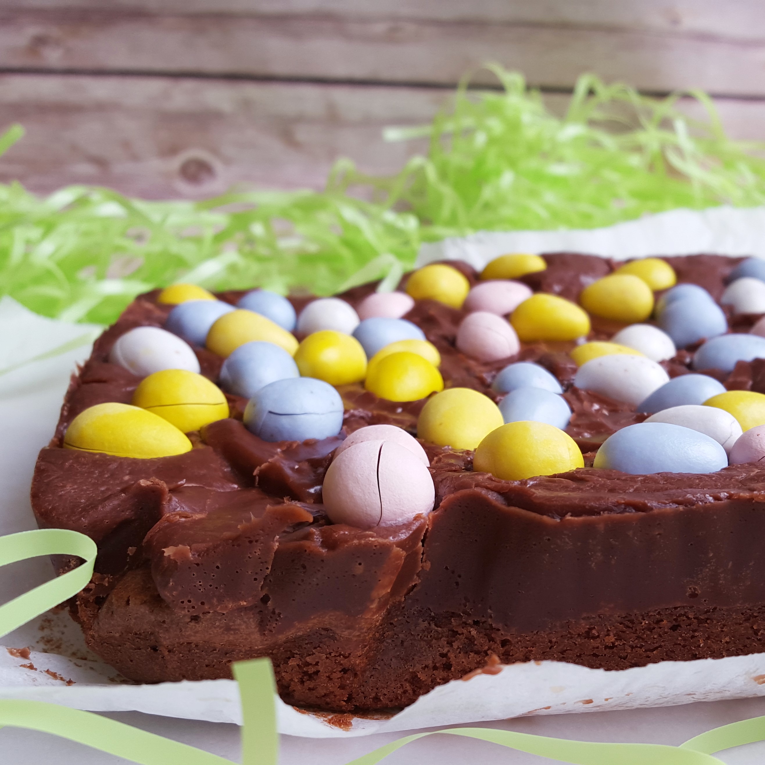 Spread over the just out of the oven brownies. Immediately sprinkle the eggs over the top and press each one down lightly. Allow brownies to cool completely in the baking pan before cutting.